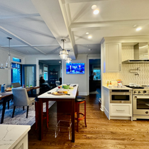 The interior renovation focuses on improving the layout of the first-floor spaces. The kitchen and dining areas will be reorganized to create a more efficient and seamless connection between them. This design change accommodates the range of needs of the client's growing family and improves the overall flow of the living spaces. These areas are also carefully planned to provide comfortable and inviting spaces for various activities, from quiet moments to large social gatherings with family and friends.